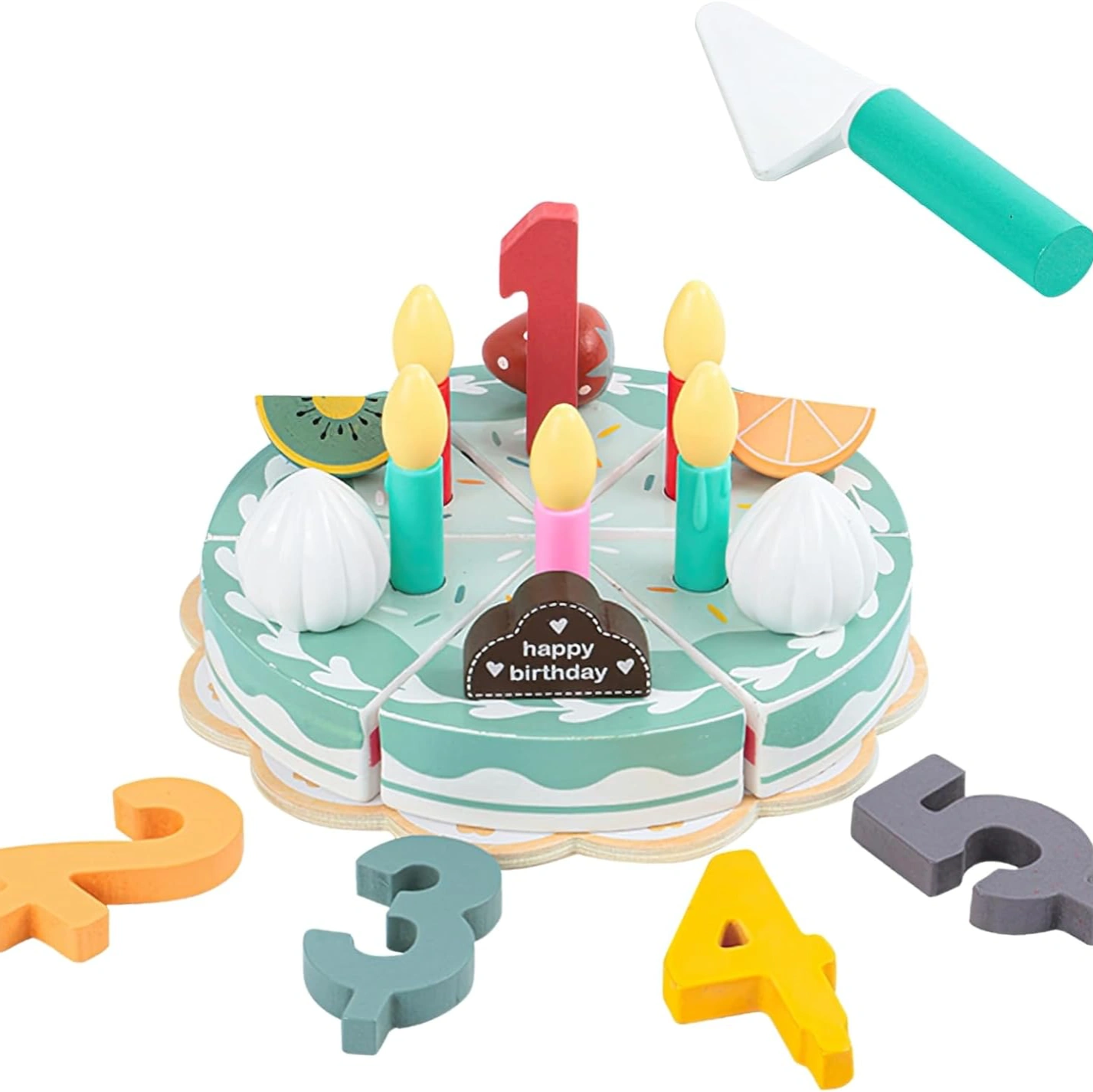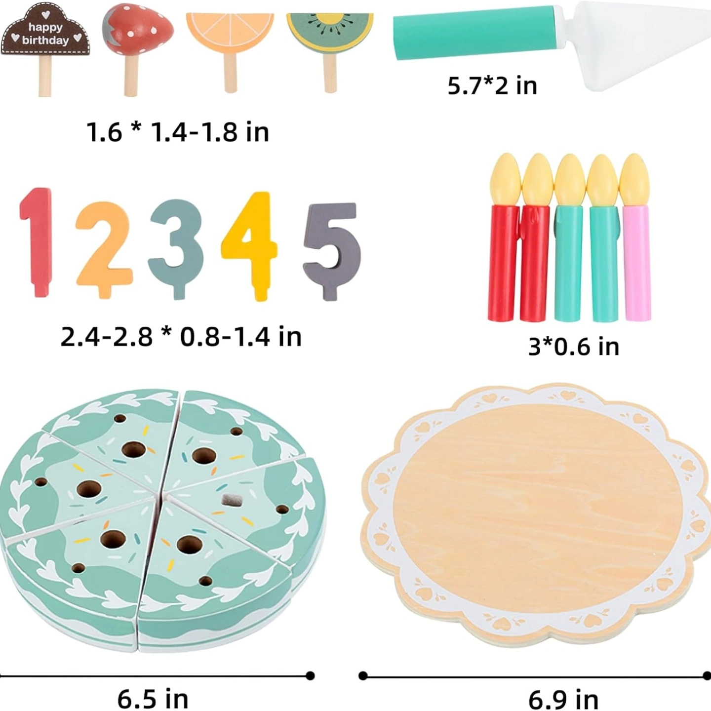 Include: Comes with 1 tray, 6 cakes, 4 fruits, 5 candles, 5 numbers and more.