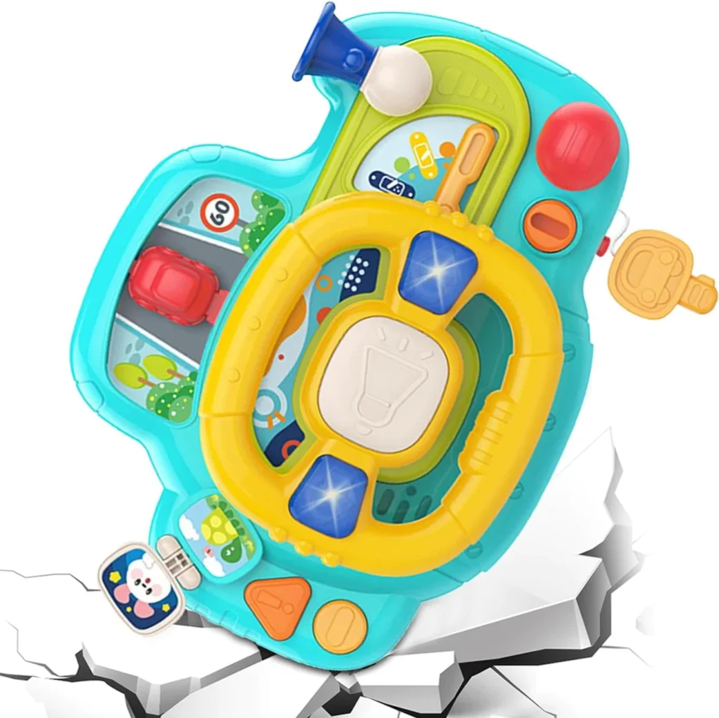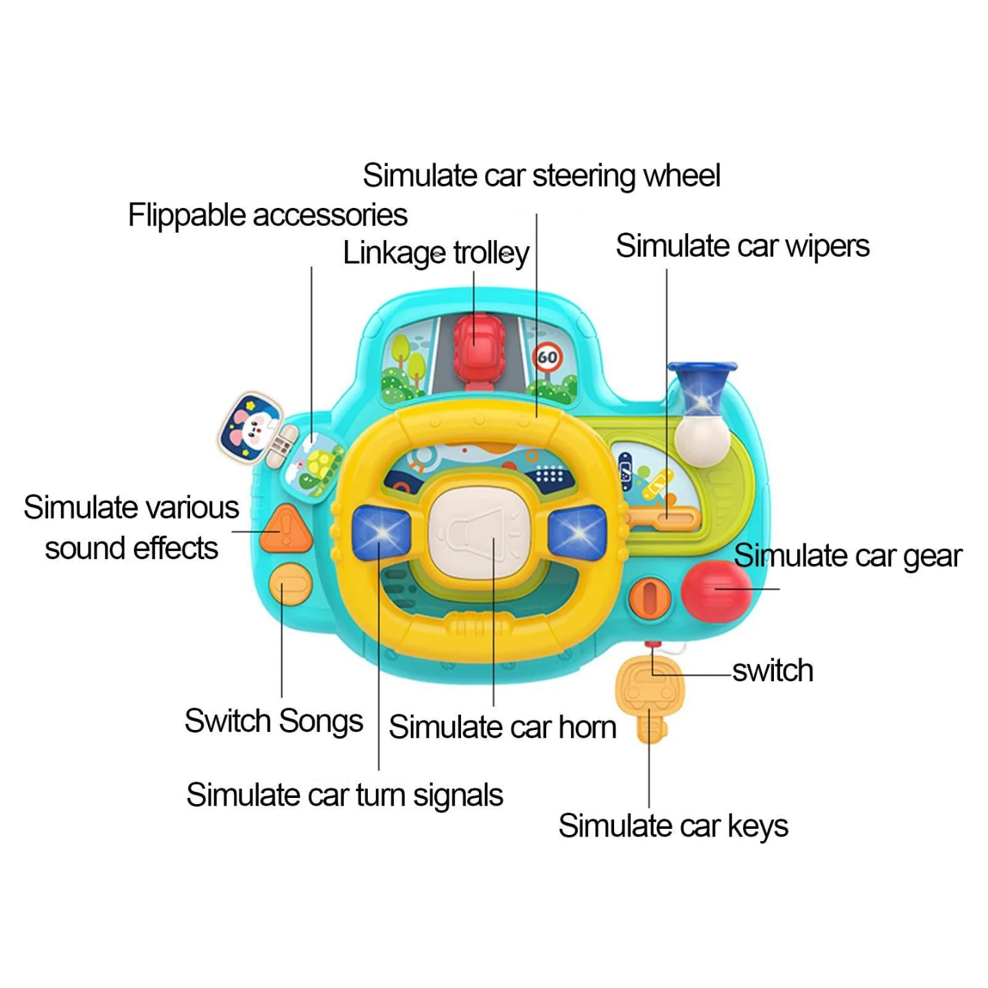 ⇔ [ Safe Operation ] This steering wheel toy is made of ABS material, which is resistant to wear and tear. It has a cute appearance and a steering wheel that provides various sounds and lights. This toy is also safe to use, as it has round corners that protect your child from harm.