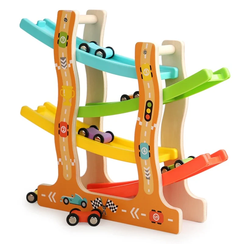 Wooden Racing Slide Cars Track Parking Lot Toys Gliding Ladder