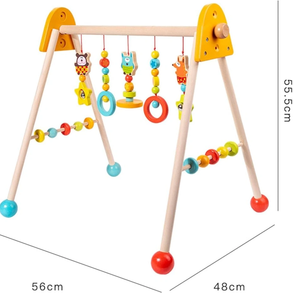Montessori Wooden Baby Gym Features Wooden Beaded Toys And Rattles That Baby Can Grasp And Develop Early Motor Skills While Enhancing Flexibility And Stretching.