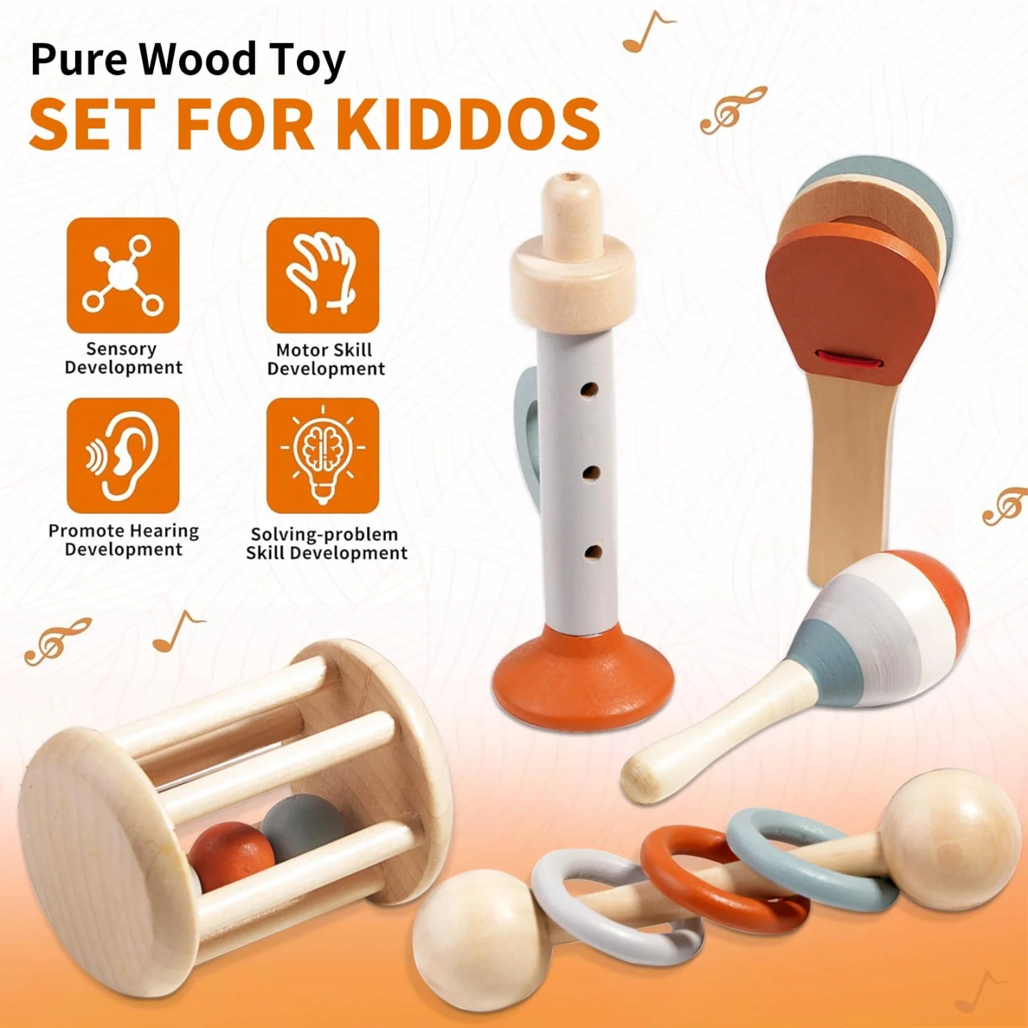 MONTESSORI MUSICAL SET: Thoughtfully designed wooden instrument set helps babies and toddlers explore rhythm, sound, and creativity through hands-on sensory play, supporting early auditory awareness and cognitive development